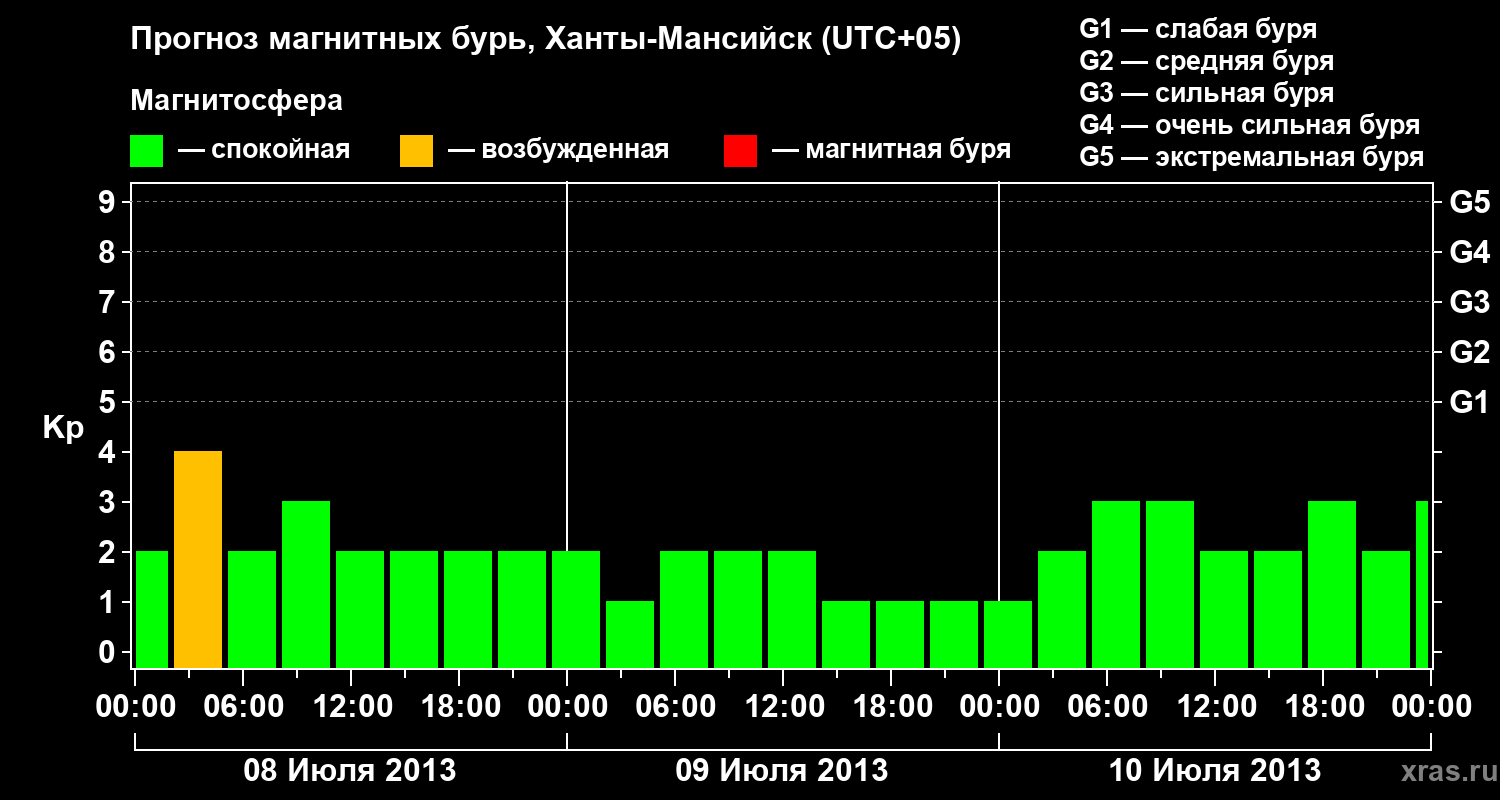 Прогноз магнитных бурь в Ханты-Мансийске — 8 июля 2013 года