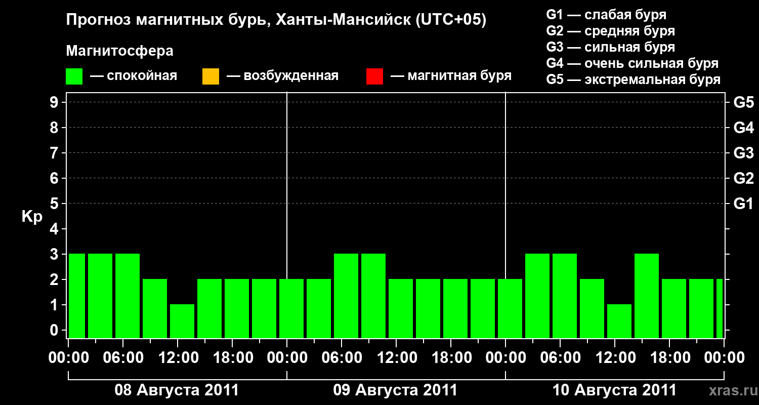 Прогноз магнитных бурь в Ханты-Мансийске на 8 августа 2011 года