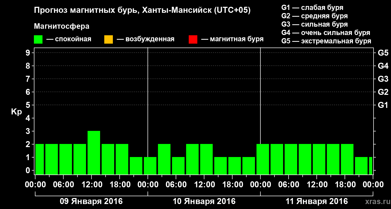 Прогноз магнитных бурь в Ханты-Мансийске — 9 января 2016 года