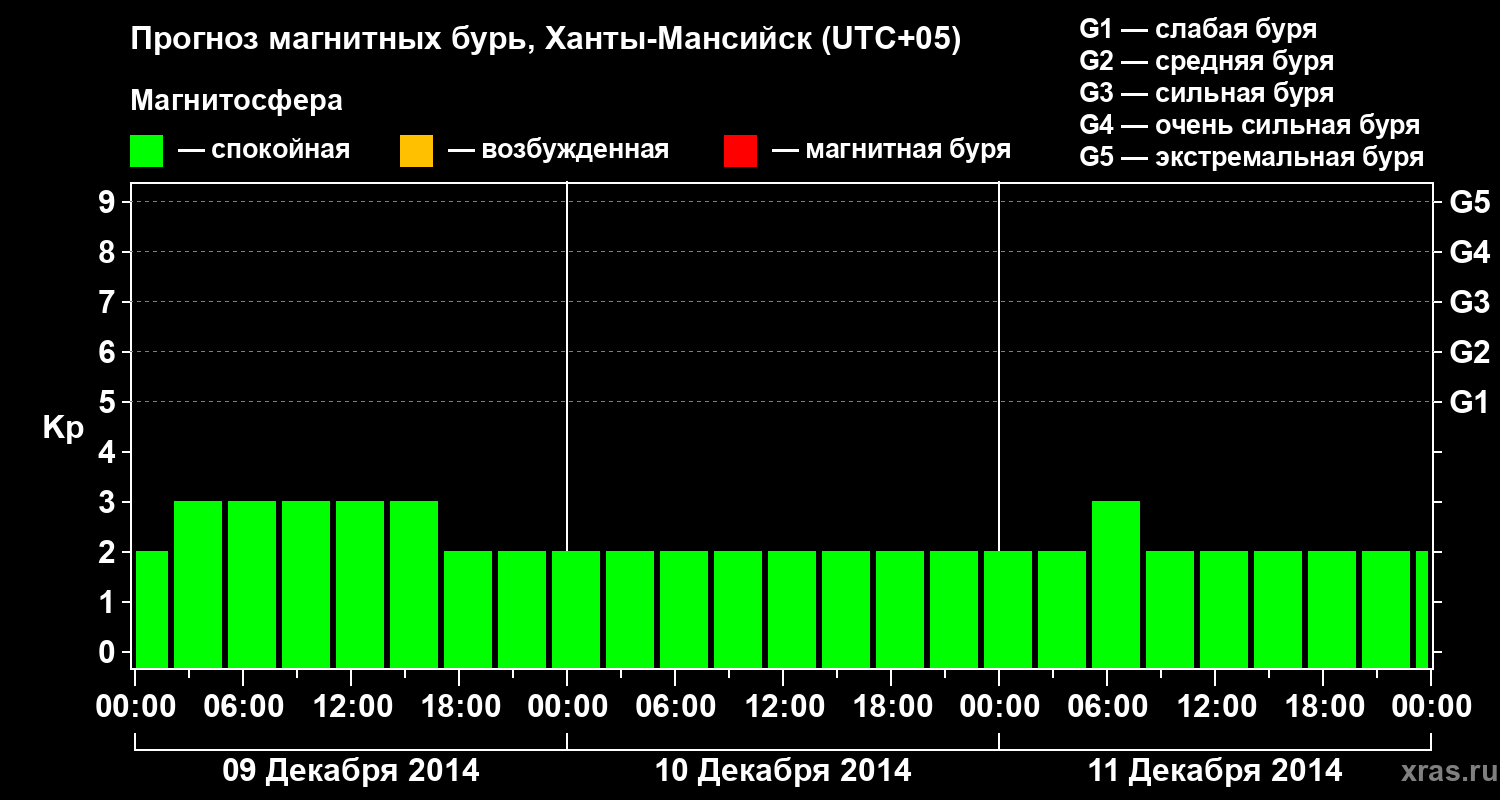 Прогноз магнитных бурь в Ханты-Мансийске — 9 декабря 2014 года