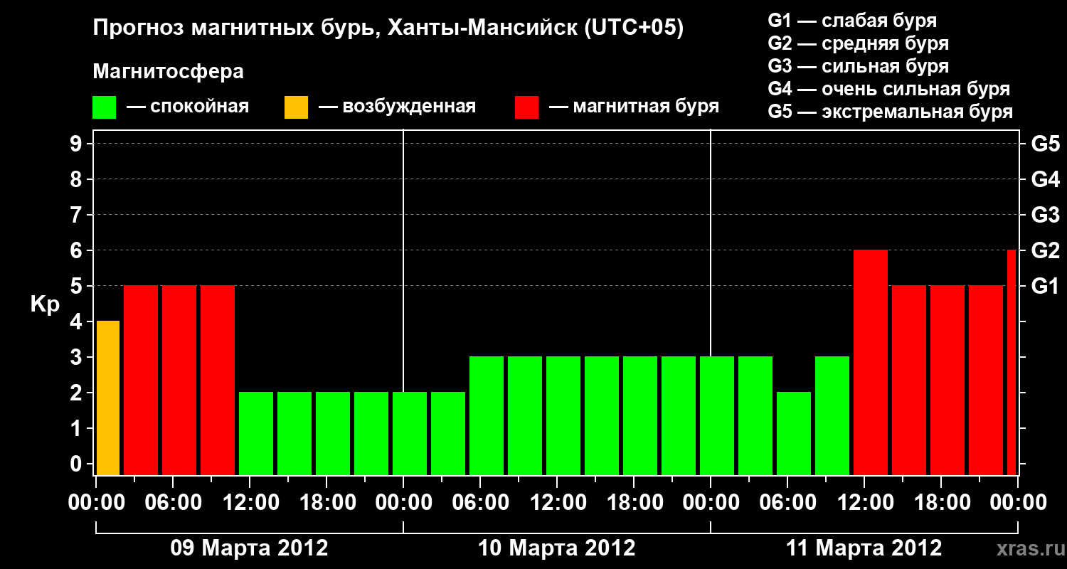 Прогноз магнитных бурь в Ханты-Мансийске на 9 марта 2012 года