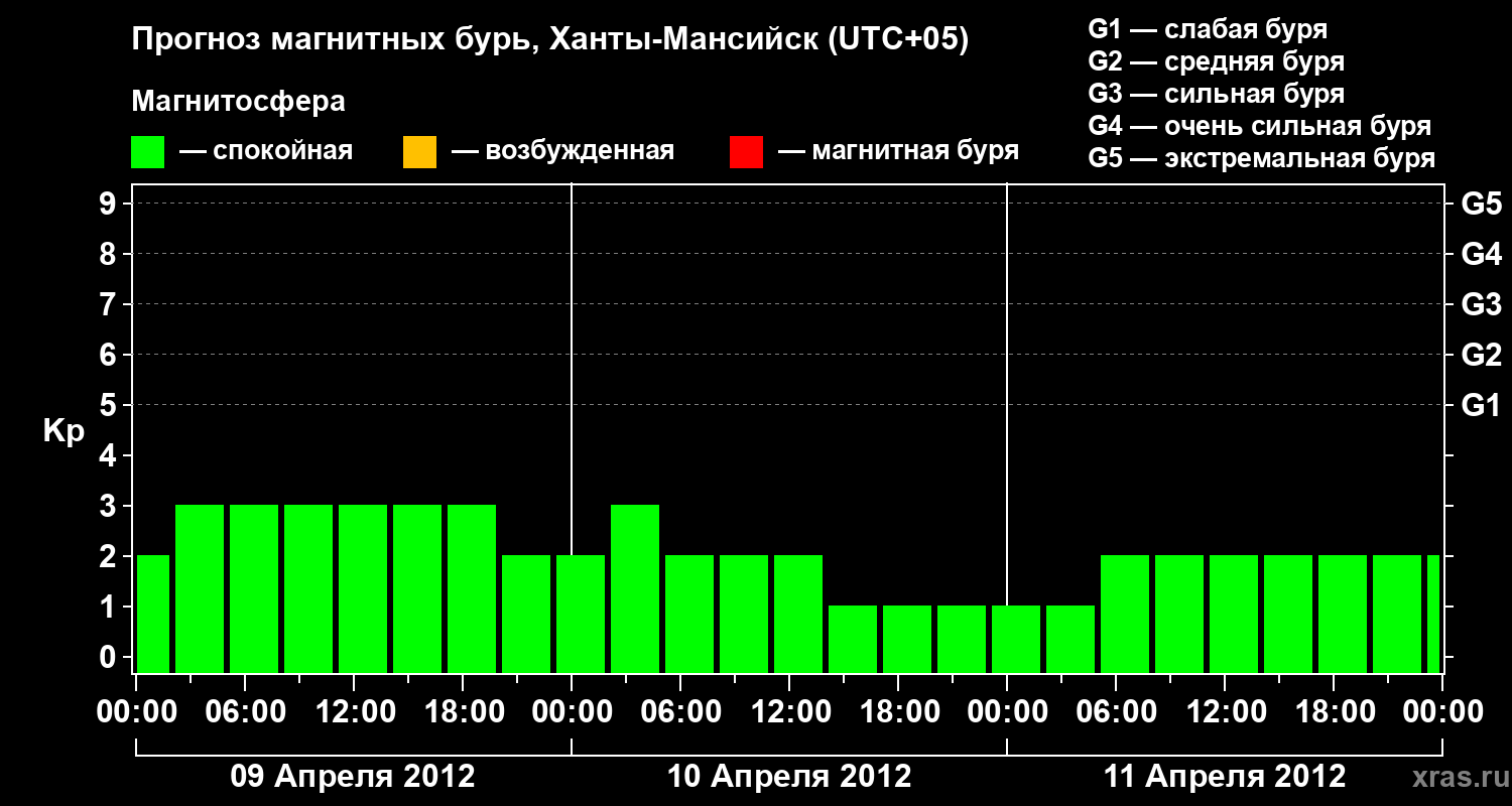 Прогноз магнитных бурь в Ханты-Мансийске на 9 апреля 2012 года