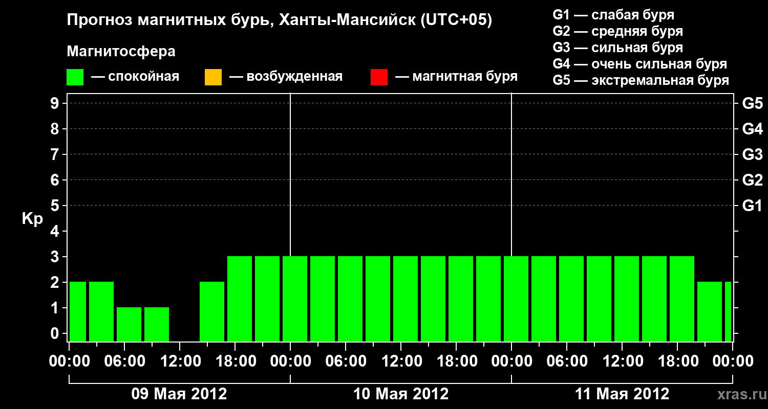 Прогноз магнитных бурь в Ханты-Мансийске на 9 мая 2012 года