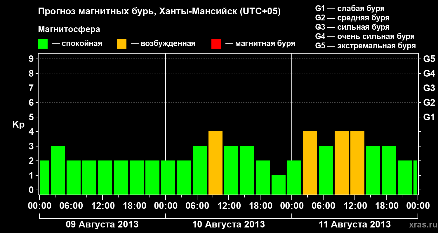 Прогноз магнитных бурь в Ханты-Мансийске на 9 августа 2013 года
