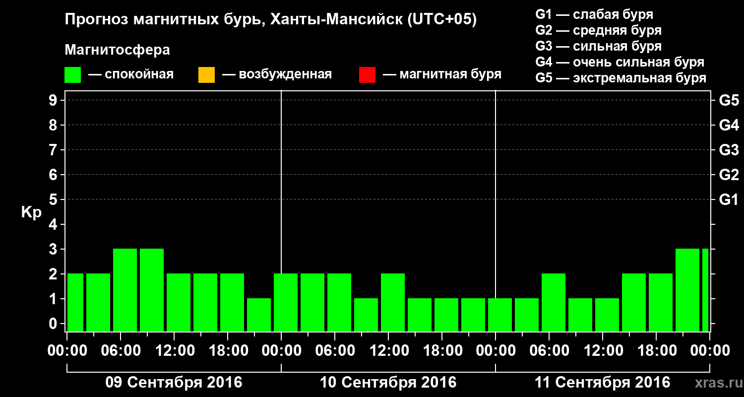 Прогноз магнитных бурь в Ханты-Мансийске — 9 сентября 2016 года