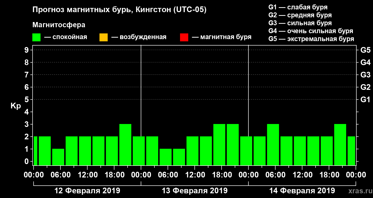 Прогноз магнитных бурь в Кингстоне — 12 февраля 2019 года