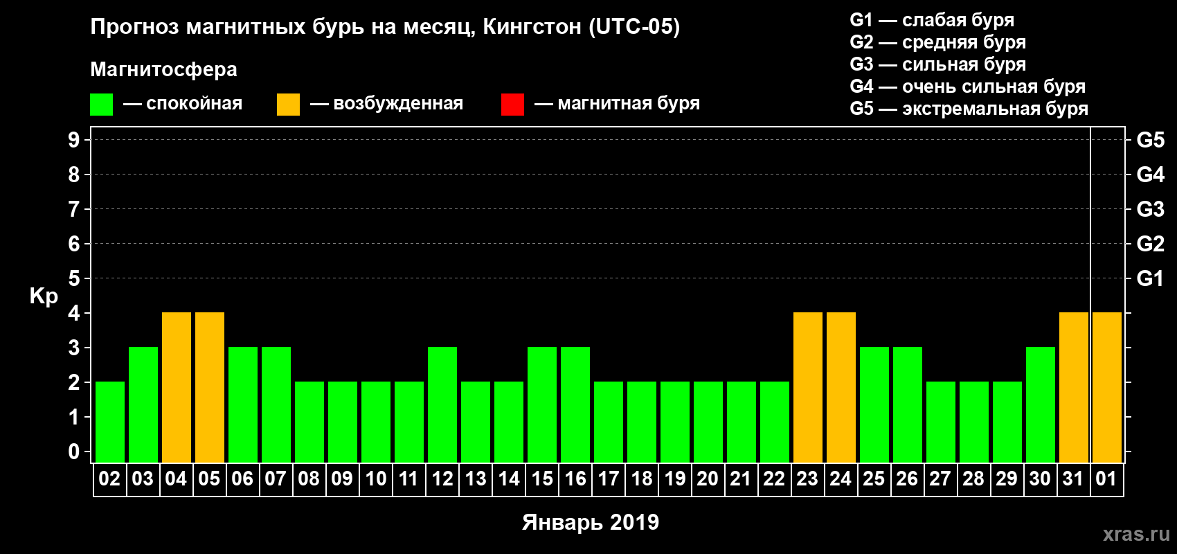 Прогноз магнитных бурь в Кингстоне — 2 января 2019 года