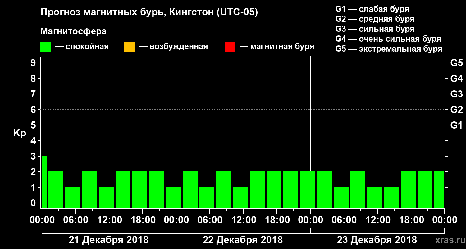 Прогноз магнитных бурь в Кингстоне на 21 декабря 2018 года