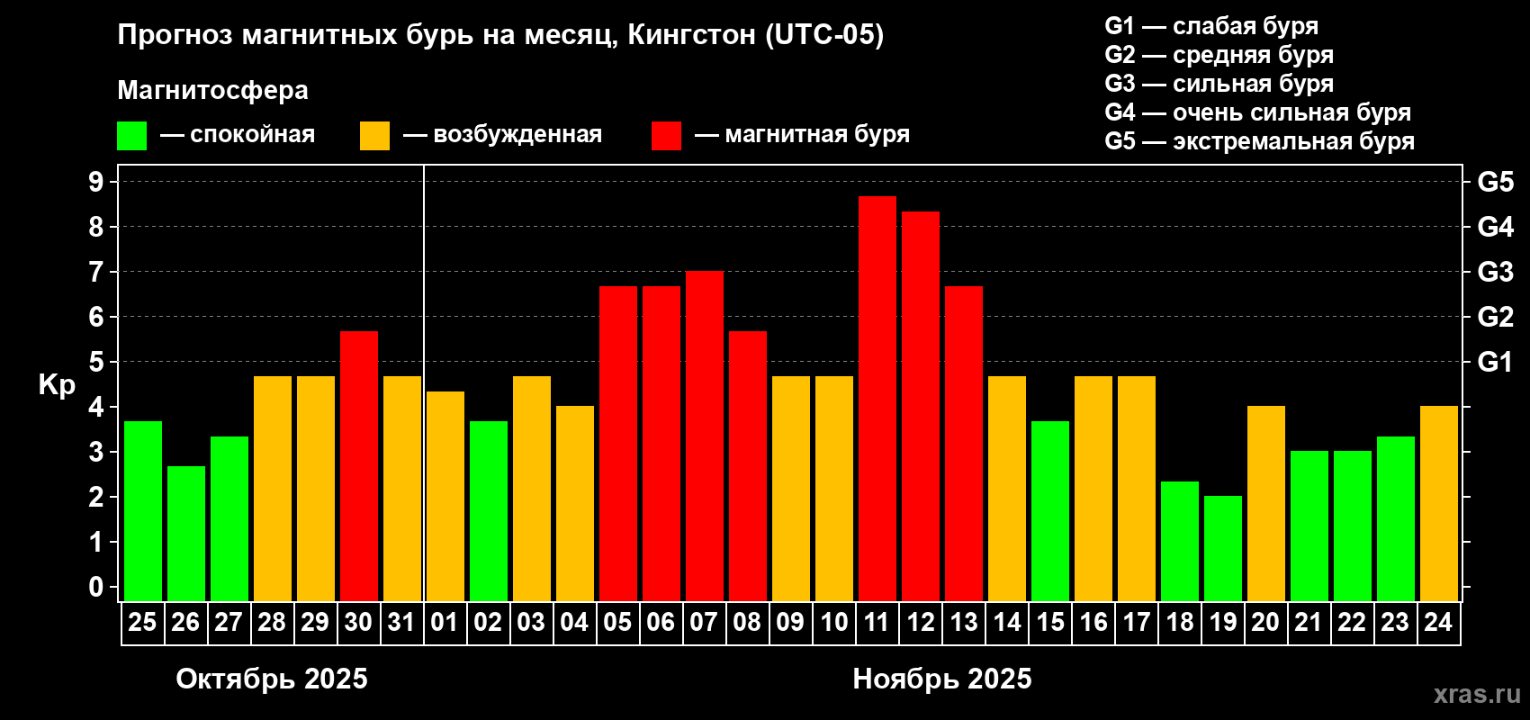 Прогноз магнитных бурь в Кингстоне — 25 октября 2025 года