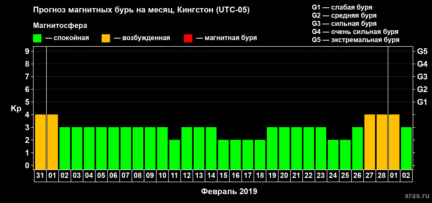 Прогноз магнитных бурь в Кингстоне — 31 января 2019 года