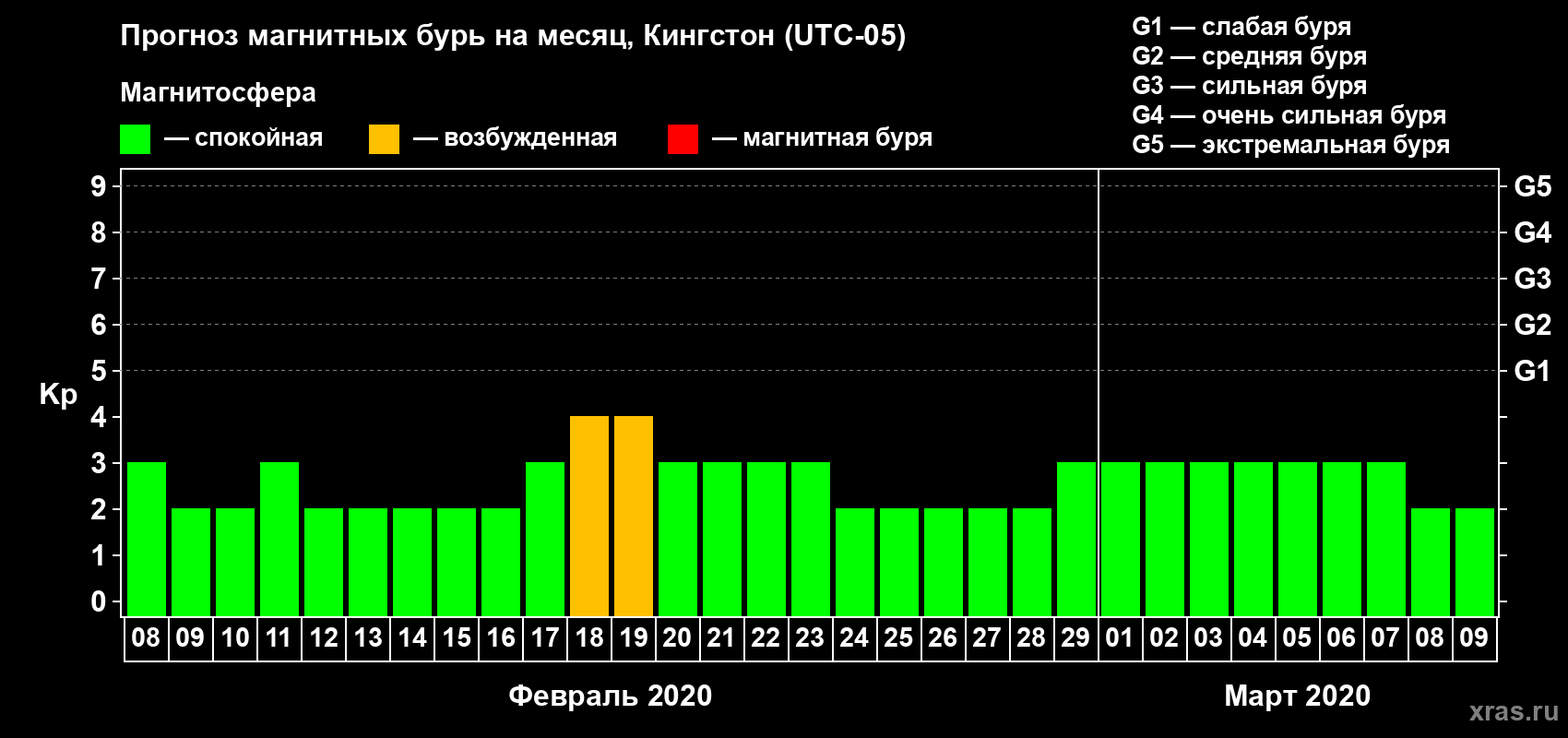 Прогноз магнитных бурь в Кингстоне — 8 февраля 2020 года