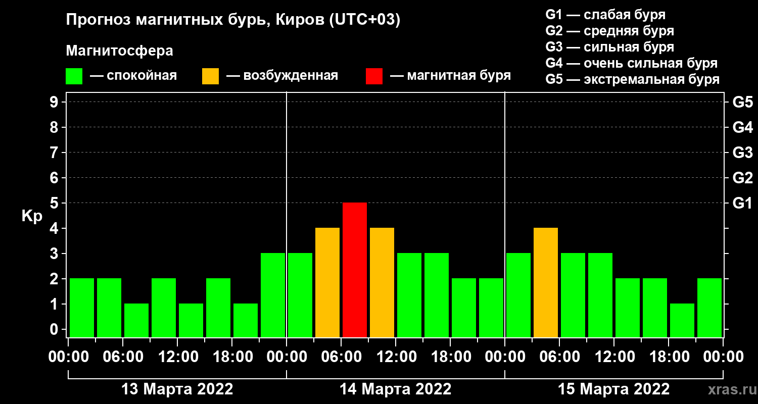 Прогноз магнитных бурь в Кирове — 13 марта 2022 года