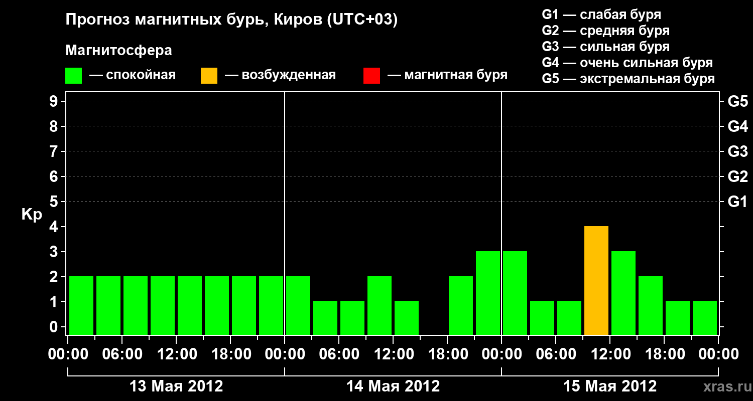 Прогноз магнитных бурь в Кирове — 13 мая 2012 года