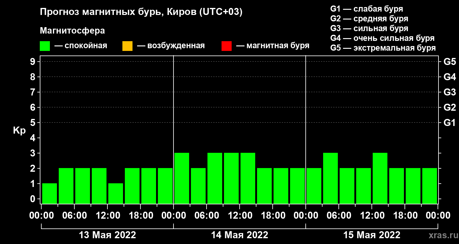 Прогноз магнитных бурь в Кирове — 13 мая 2022 года