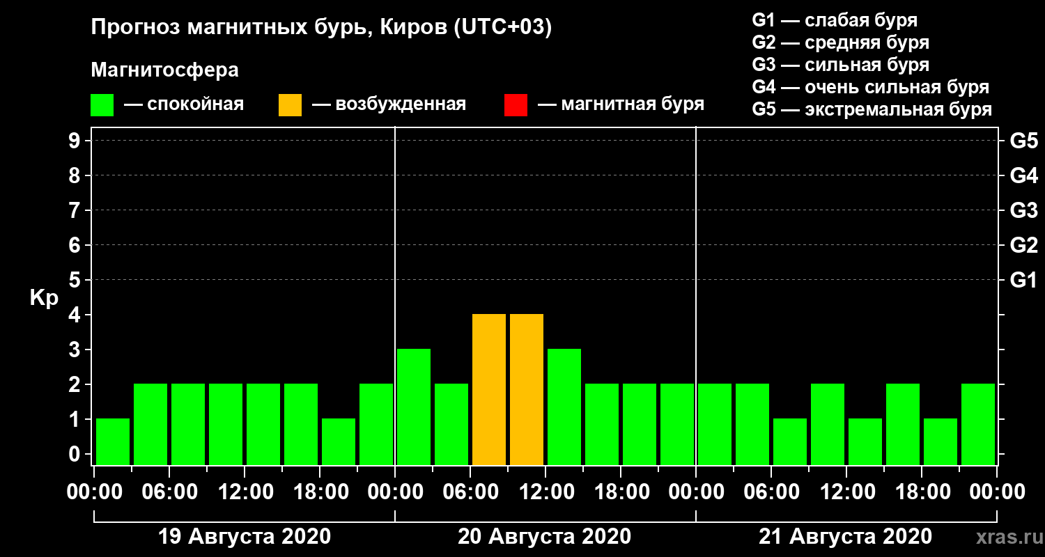 Прогноз магнитных бурь в Кирове на 19 августа 2020 года