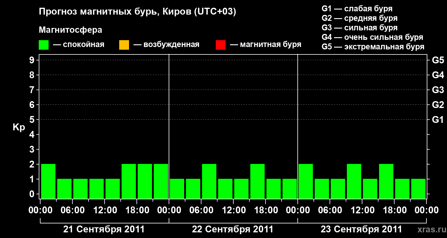 Прогноз магнитных бурь в Кирове на 21 сентября 2011 года
