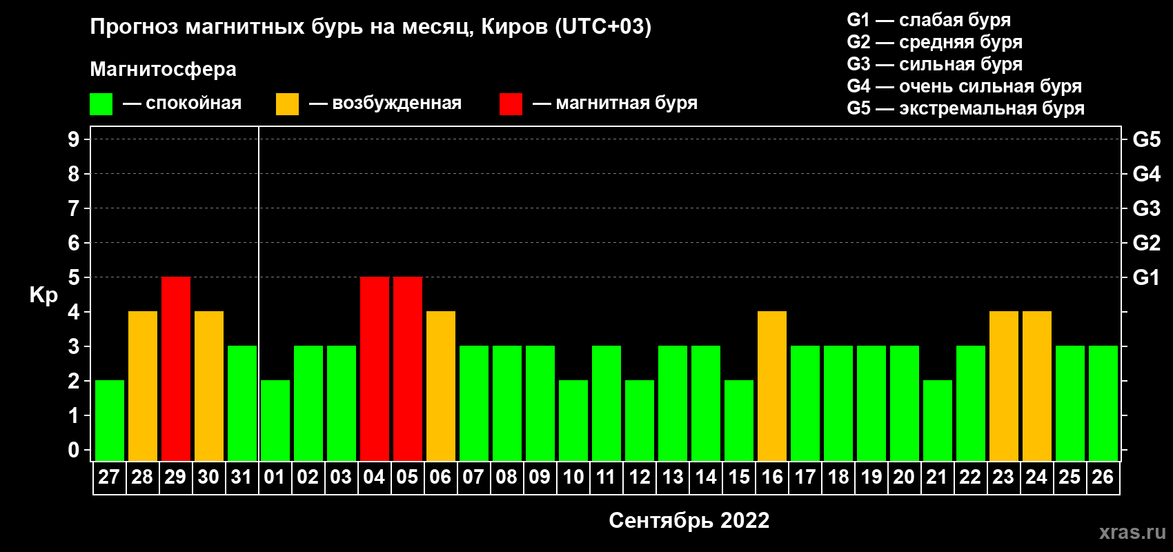 Прогноз магнитных бурь в Кирове на 27 августа 2022 года