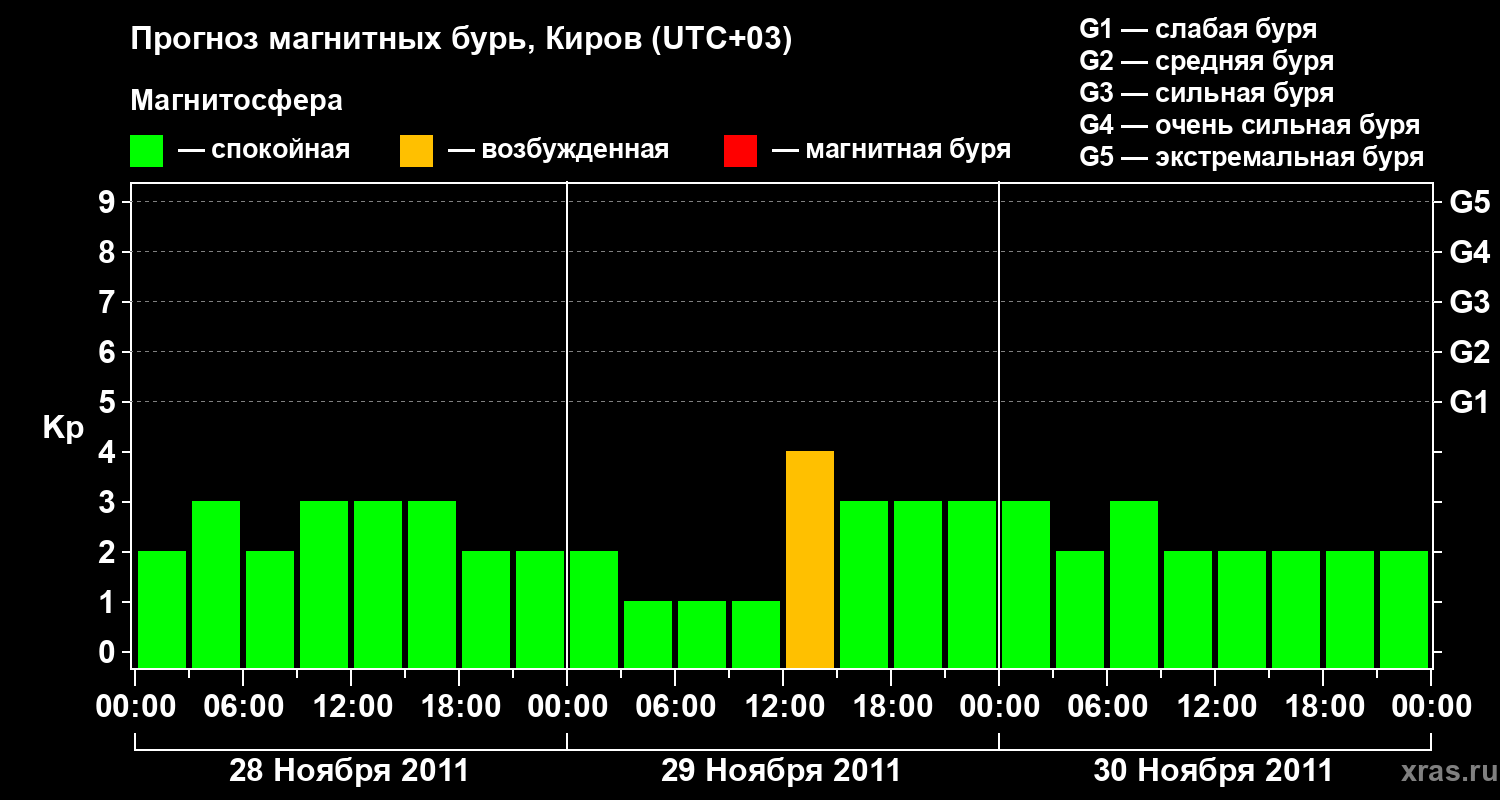 Прогноз магнитных бурь в Кирове — 28 ноября 2011 года