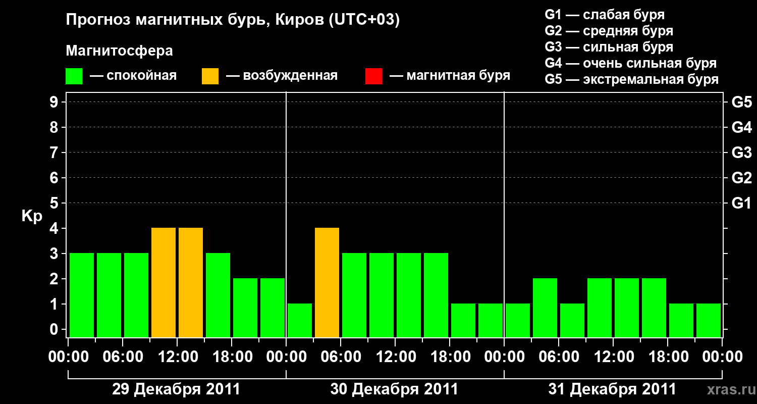Прогноз магнитных бурь в Кирове — 29 декабря 2011 года