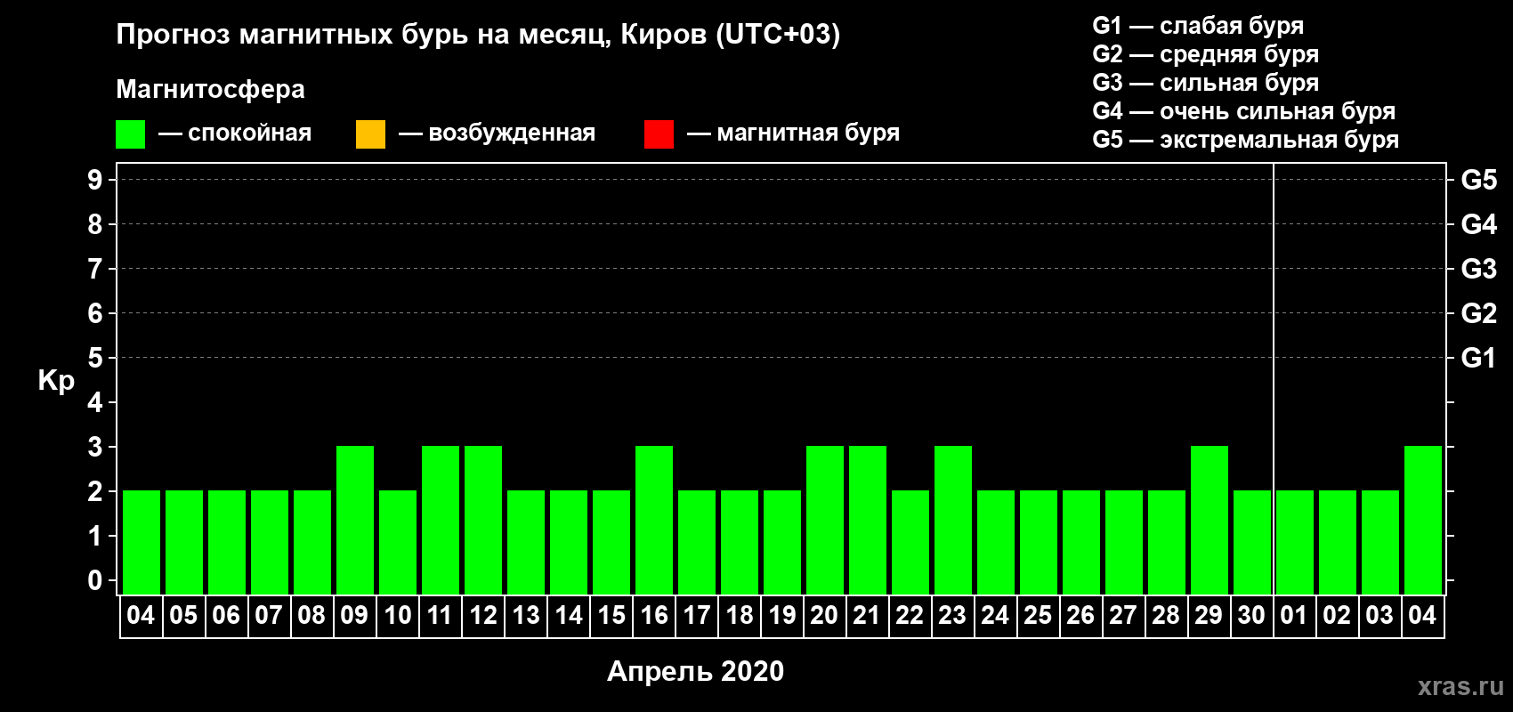 Прогноз магнитных бурь в Кирове на 4 апреля 2020 года