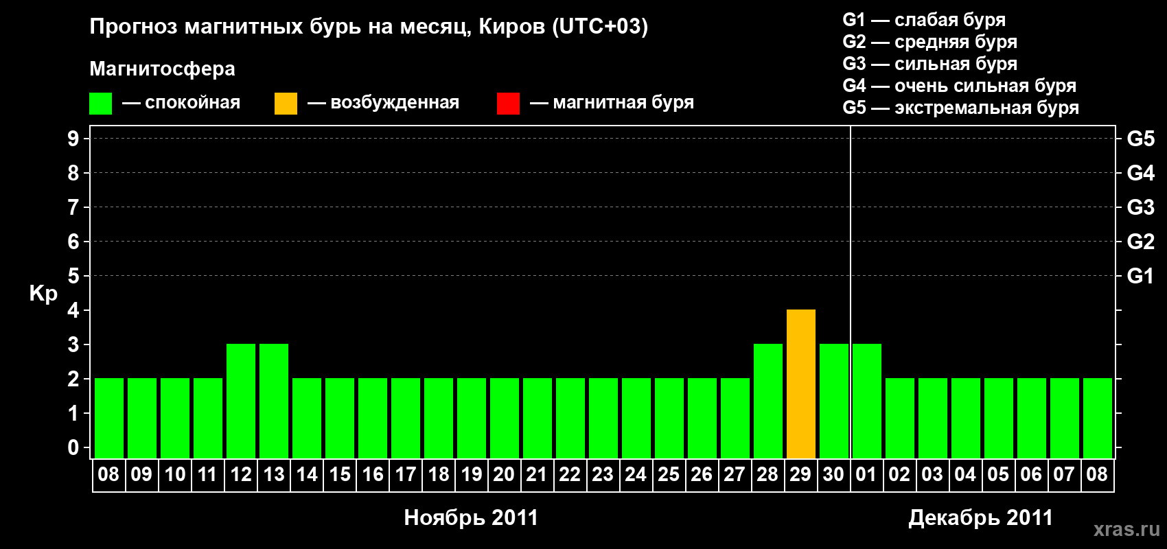 Прогноз магнитных бурь в Кирове — 8 ноября 2011 года