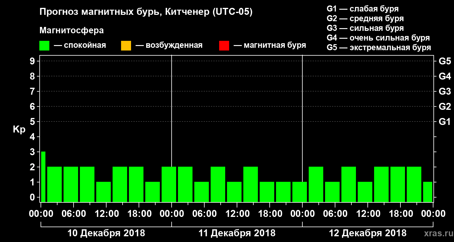 Прогноз магнитных бурь в Китченере — 10 декабря 2018 года