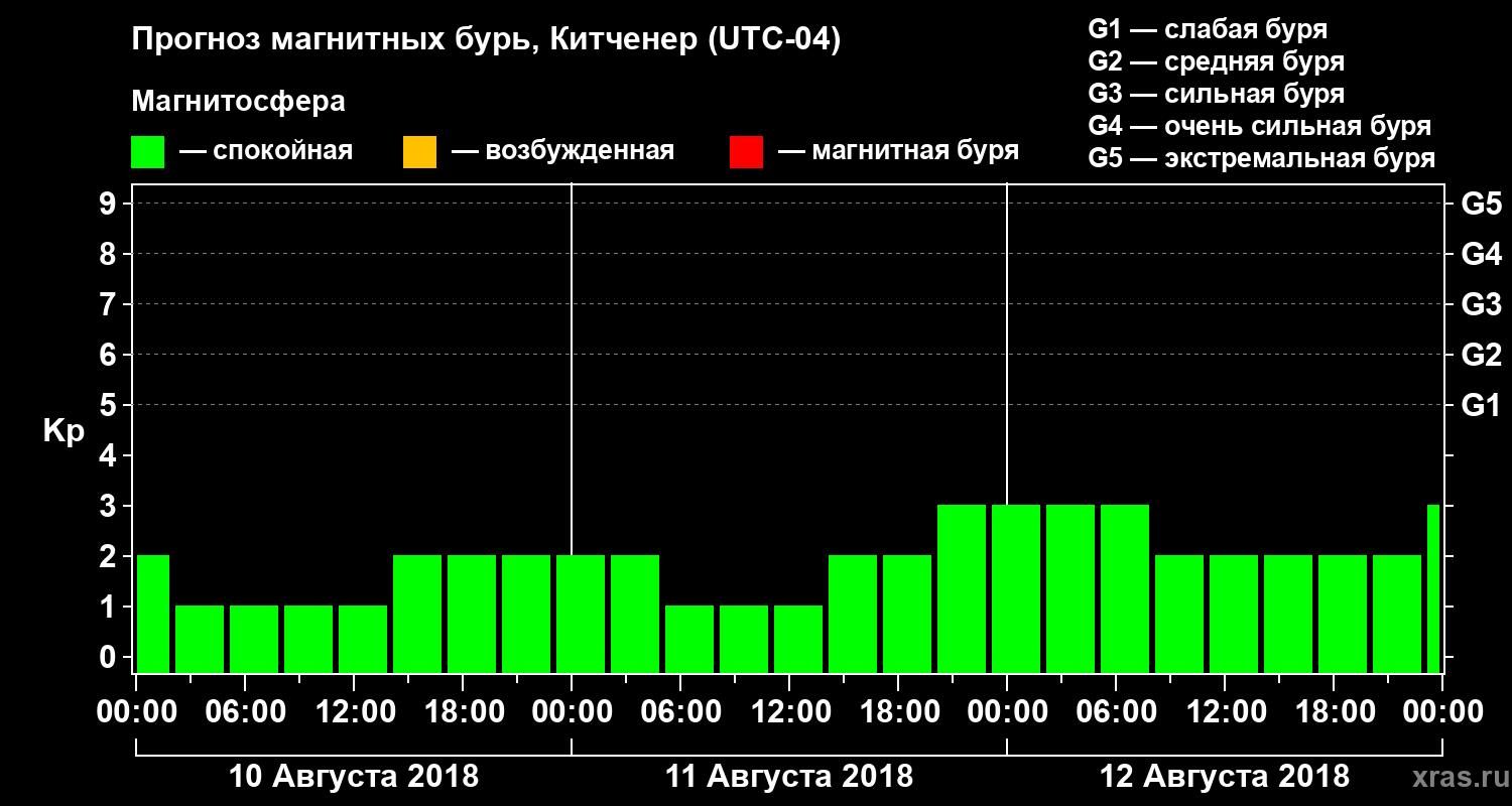 Прогноз магнитных бурь в Китченере — 10 августа 2018 года