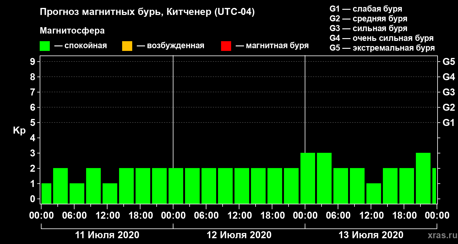 Прогноз магнитных бурь в Китченере на 11 июля 2020 года