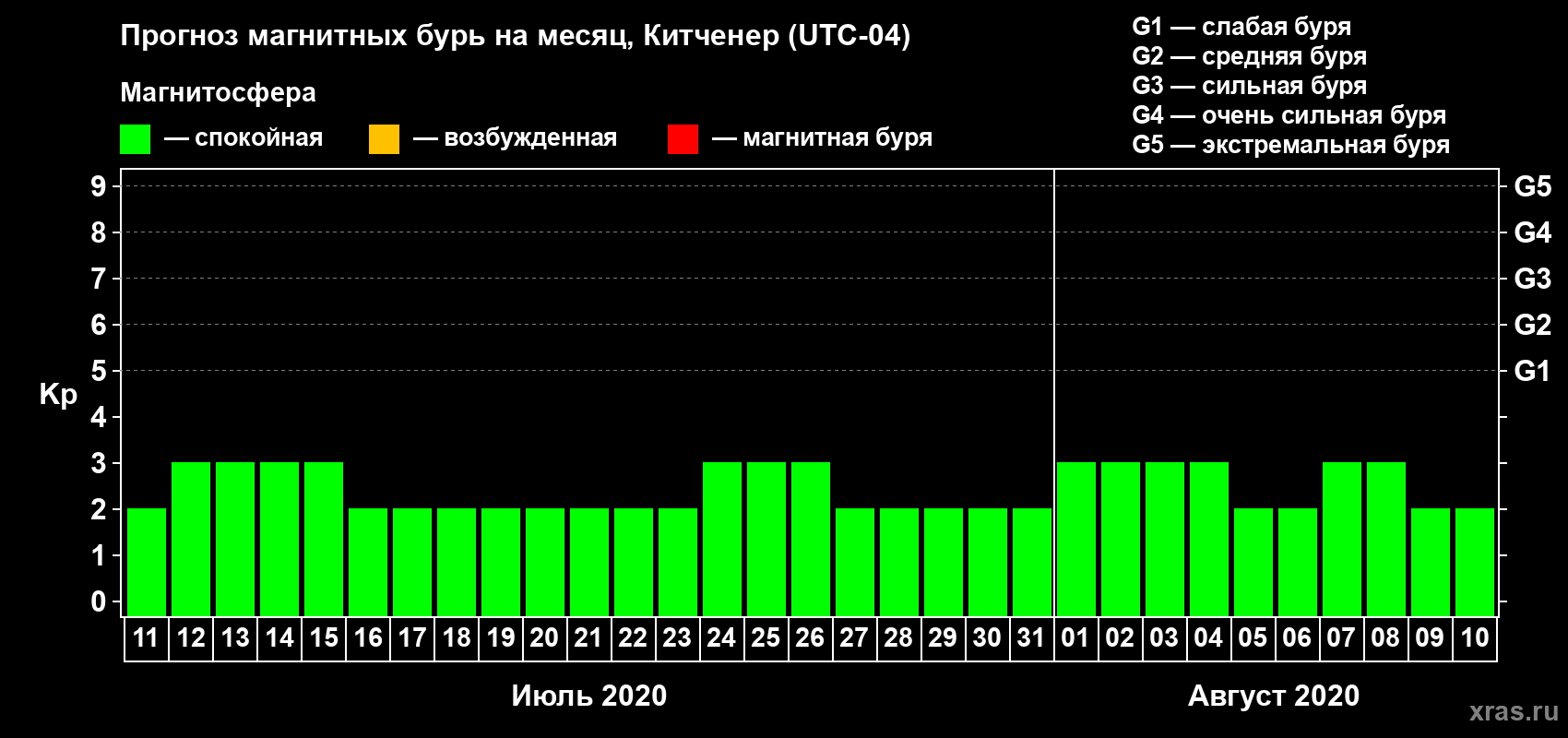 Прогноз магнитных бурь в Китченере — 11 июля 2020 года