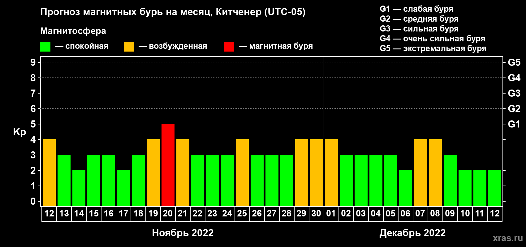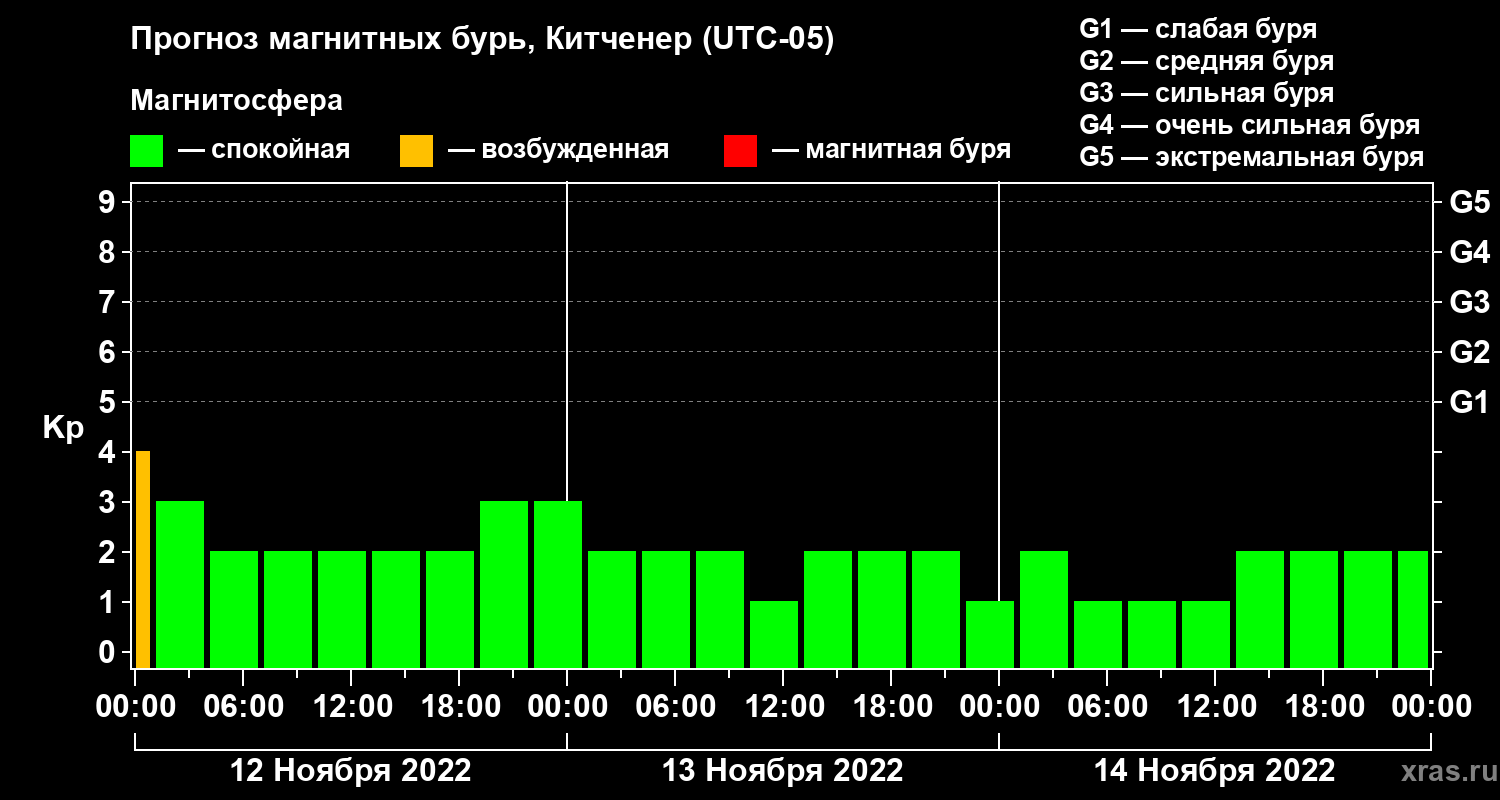 Прогноз магнитных бурь в Китченере — 12 ноября 2022 года