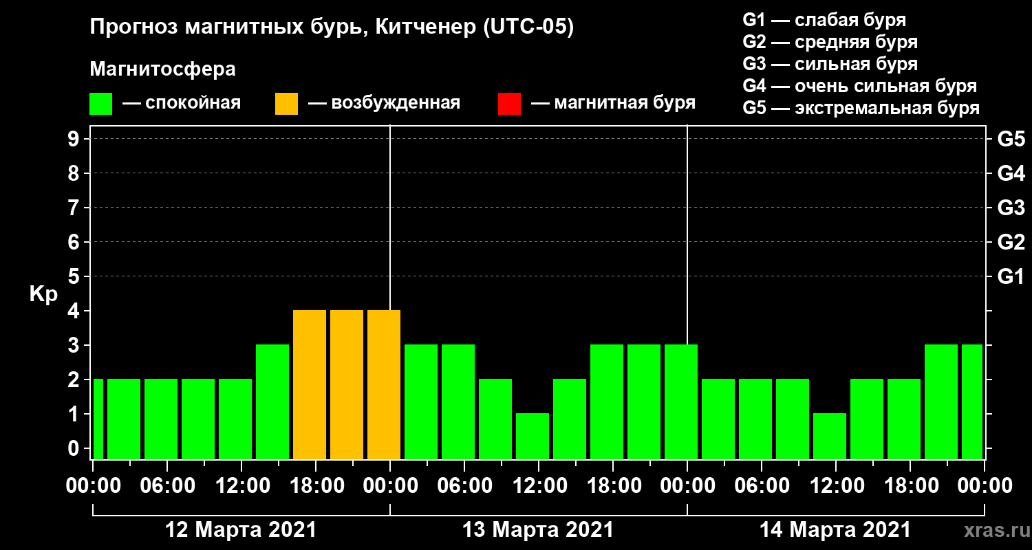Прогноз магнитных бурь в Китченере на 12 марта 2021 года