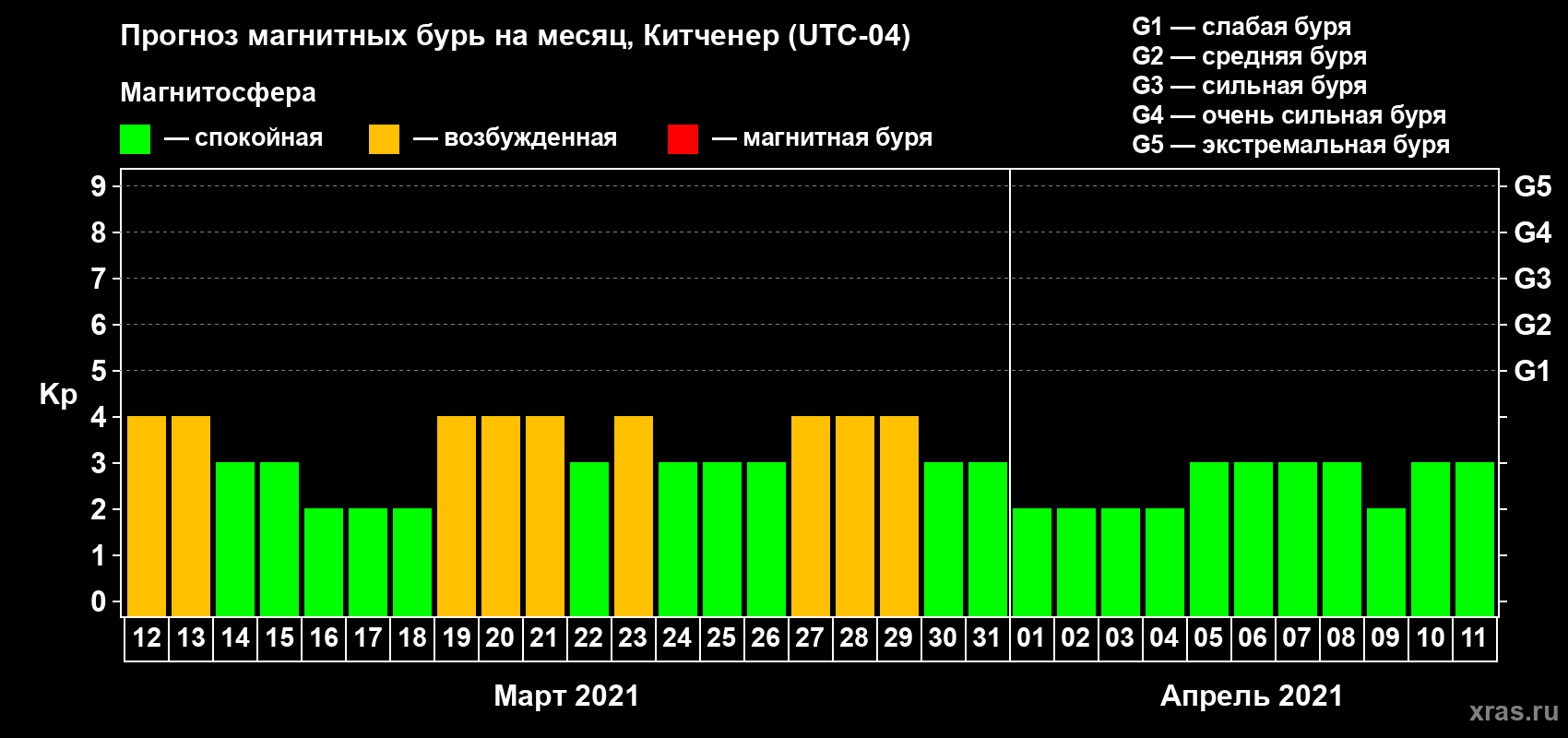 Прогноз магнитных бурь в Китченере — 12 марта 2021 года