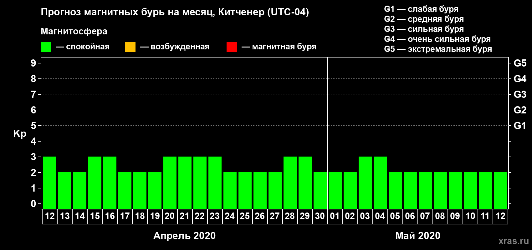 Прогноз магнитных бурь в Китченере на 12 апреля 2020 года