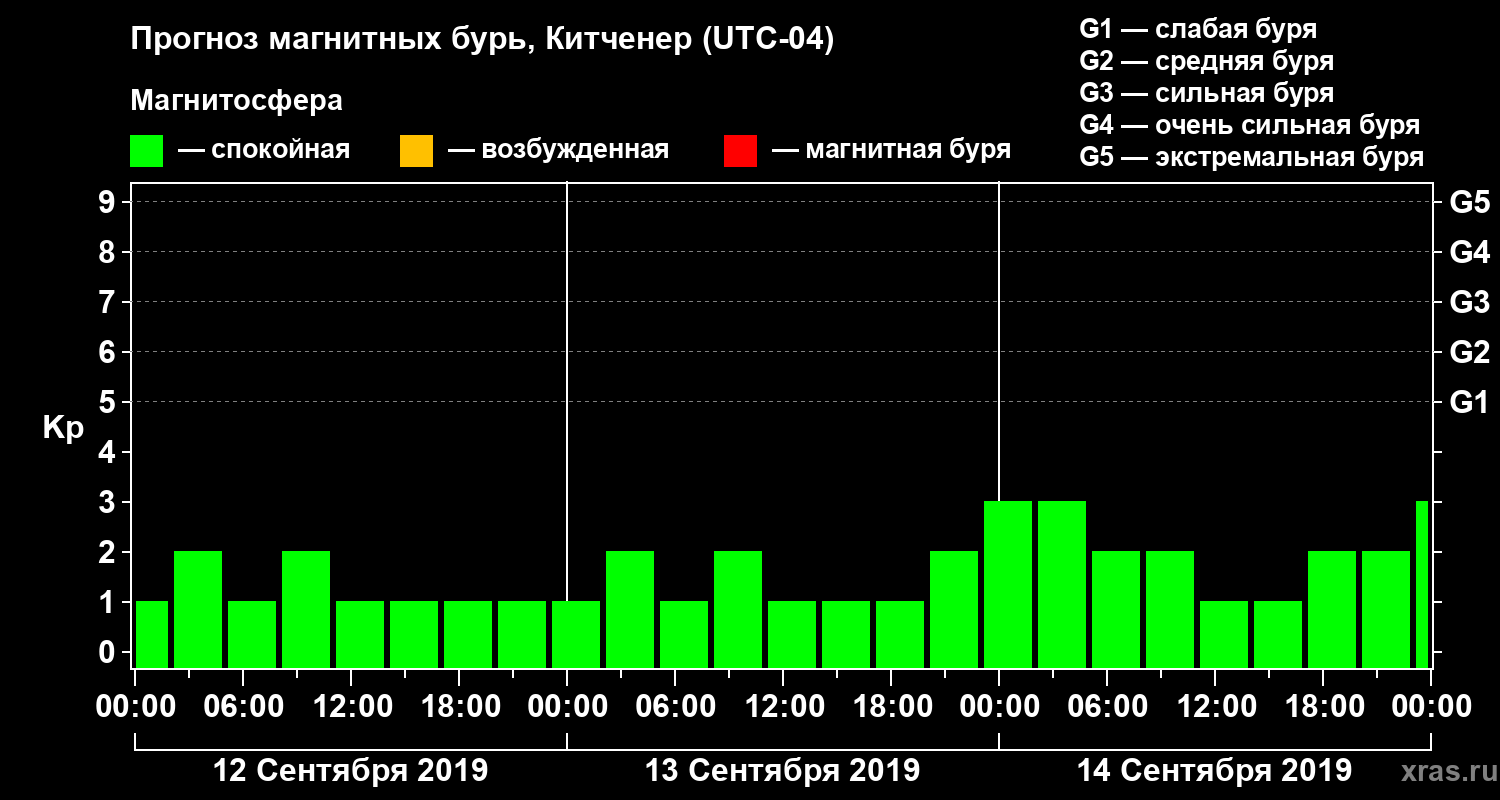 Прогноз магнитных бурь в Китченере на 12 сентября 2019 года