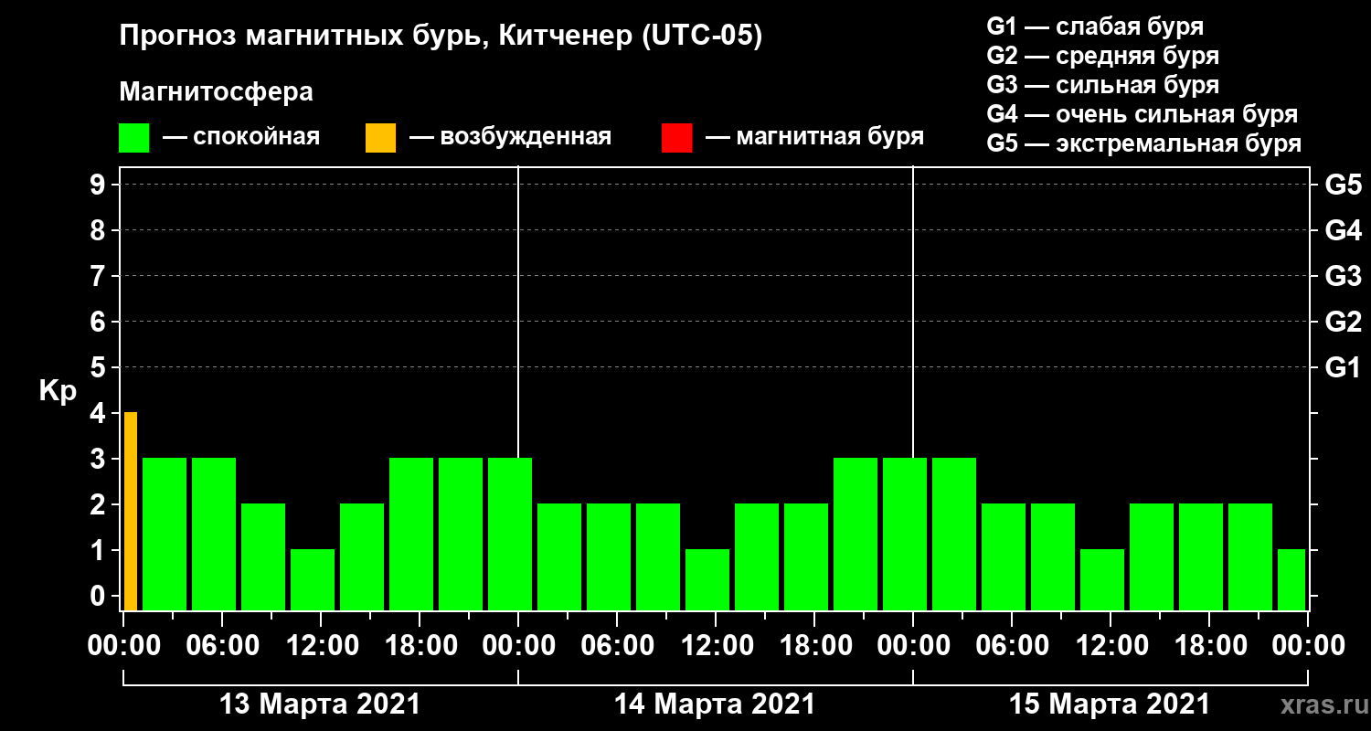 Прогноз магнитных бурь в Китченере на 13 марта 2021 года