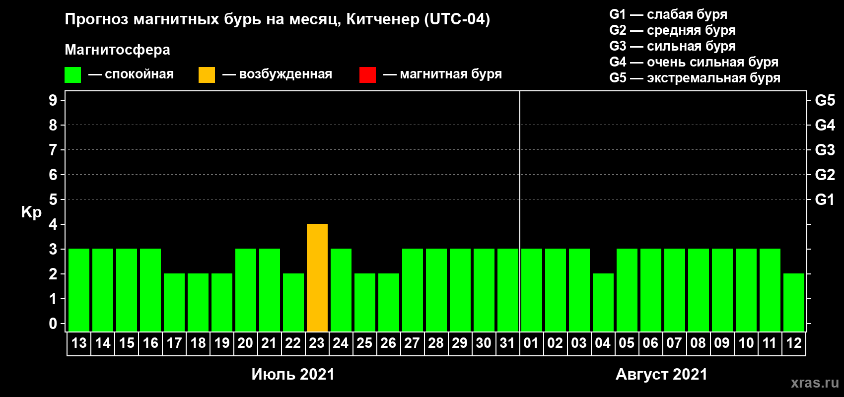 Прогноз магнитных бурь в Китченере — 13 июля 2021 года