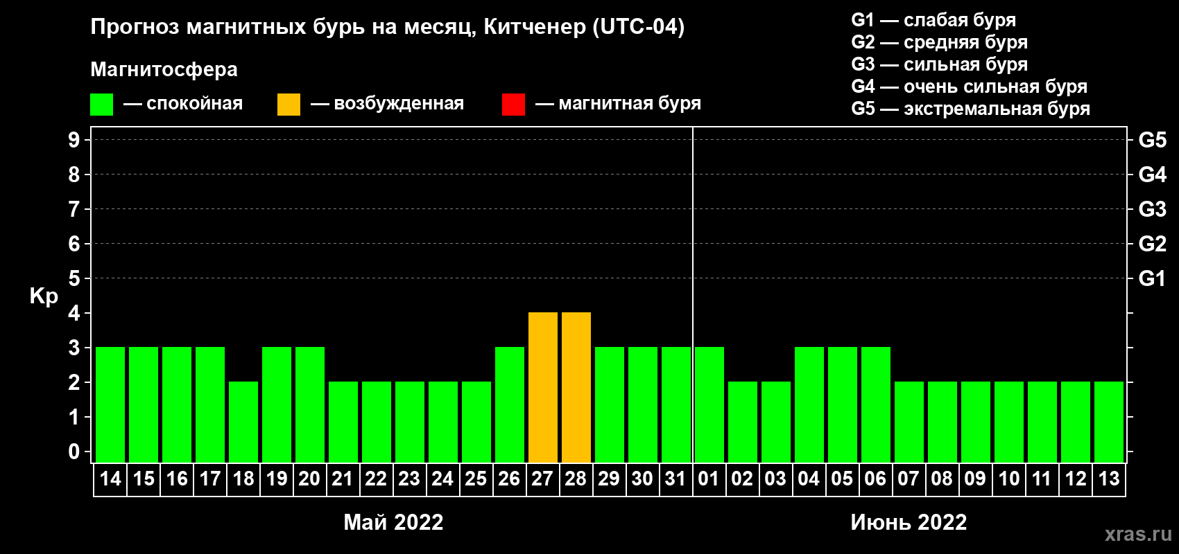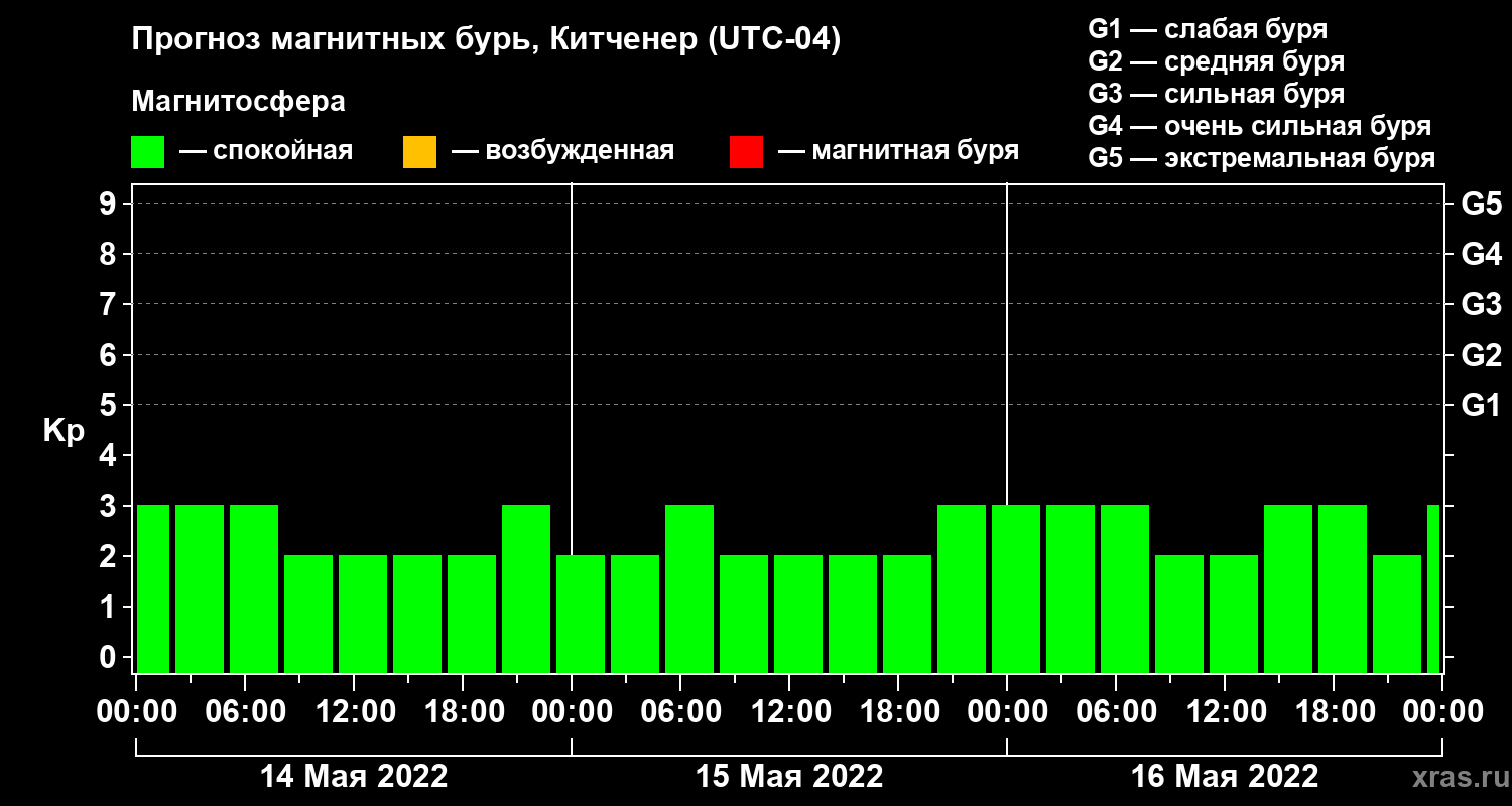 Прогноз магнитных бурь в Китченере на 14 мая 2022 года