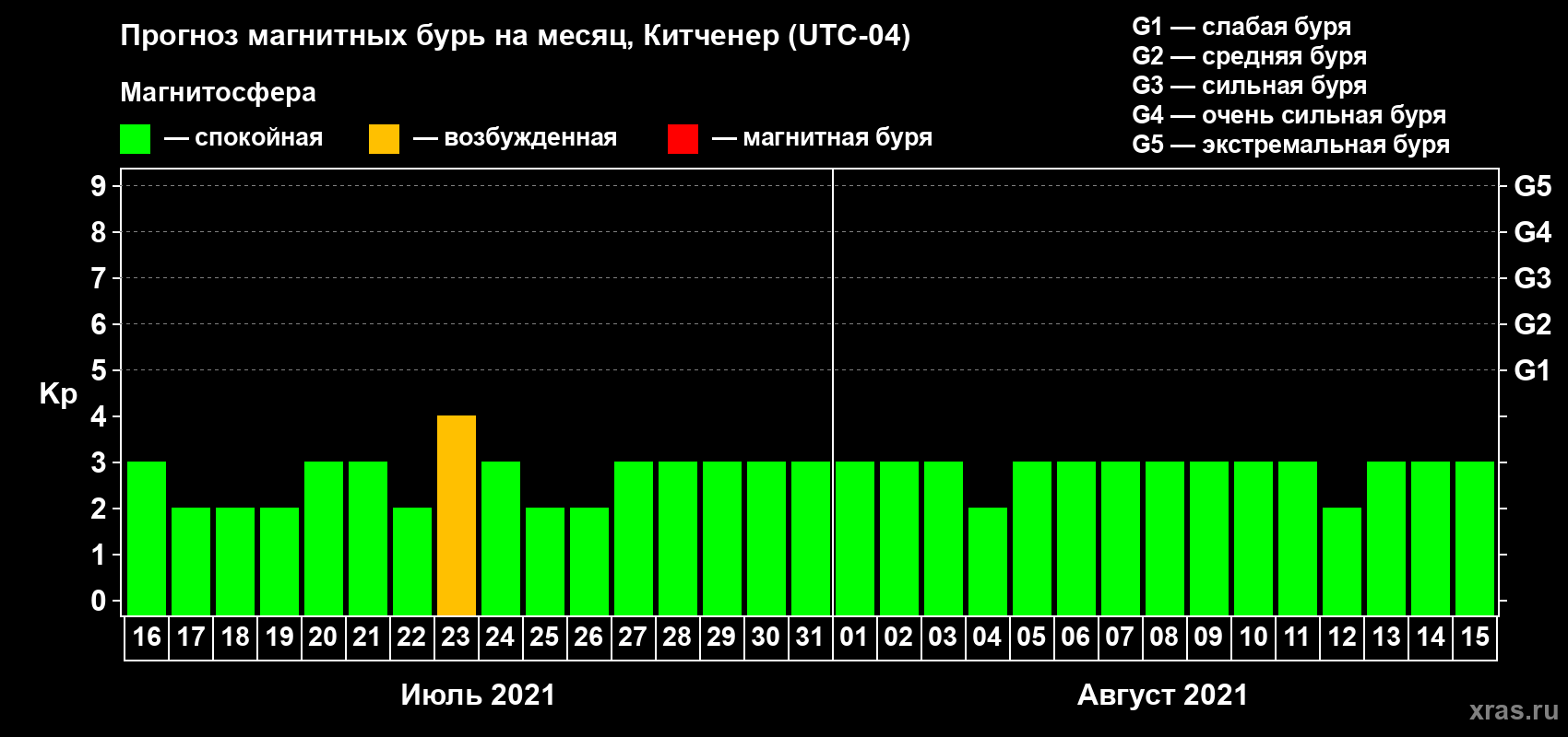 Прогноз магнитных бурь в Китченере — 16 июля 2021 года