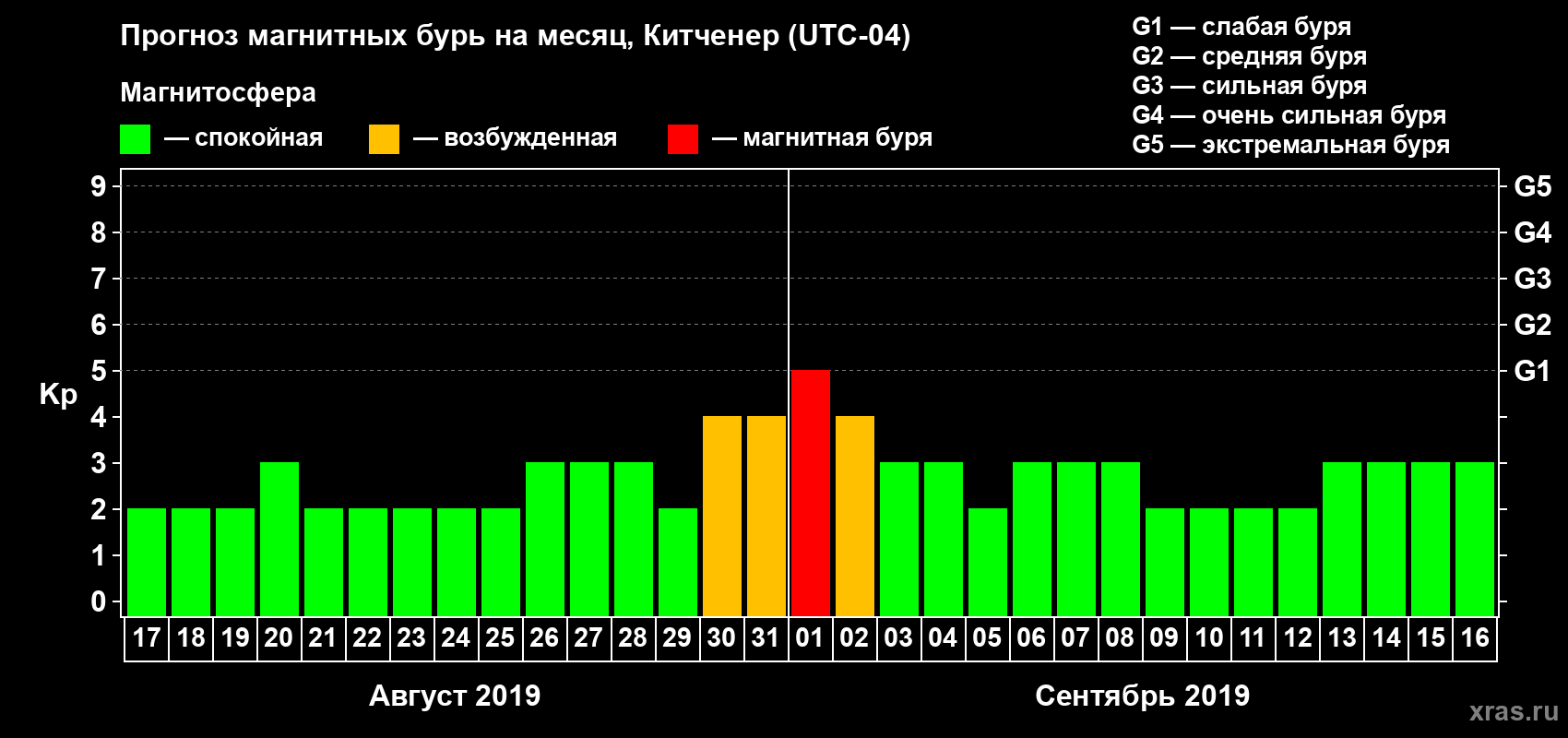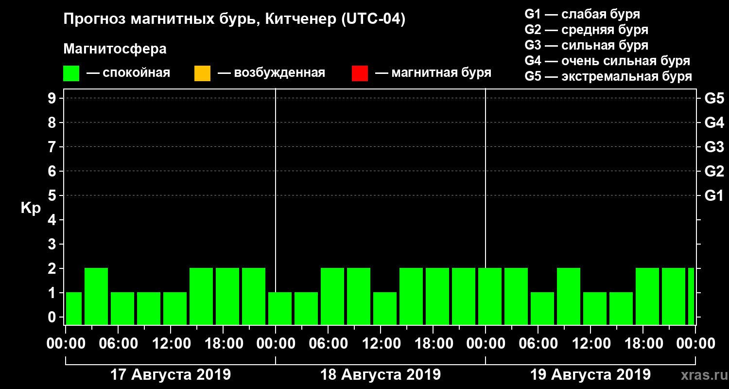 Прогноз магнитных бурь в Китченере — 17 августа 2019 года