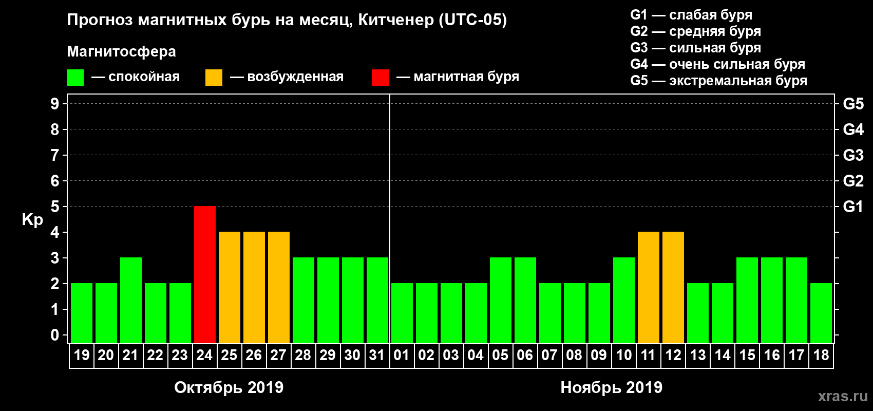Прогноз магнитных бурь в Китченере — 19 октября 2019 года