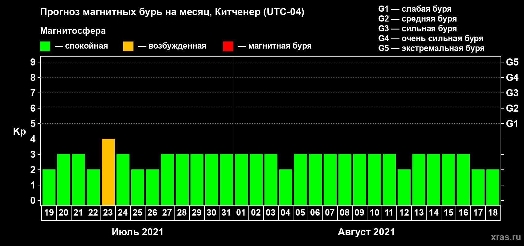 Прогноз магнитных бурь в Китченере — 19 июля 2021 года