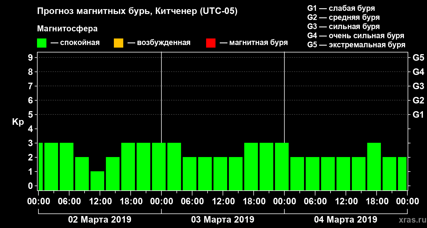 Прогноз магнитных бурь в Китченере на 2 марта 2019 года