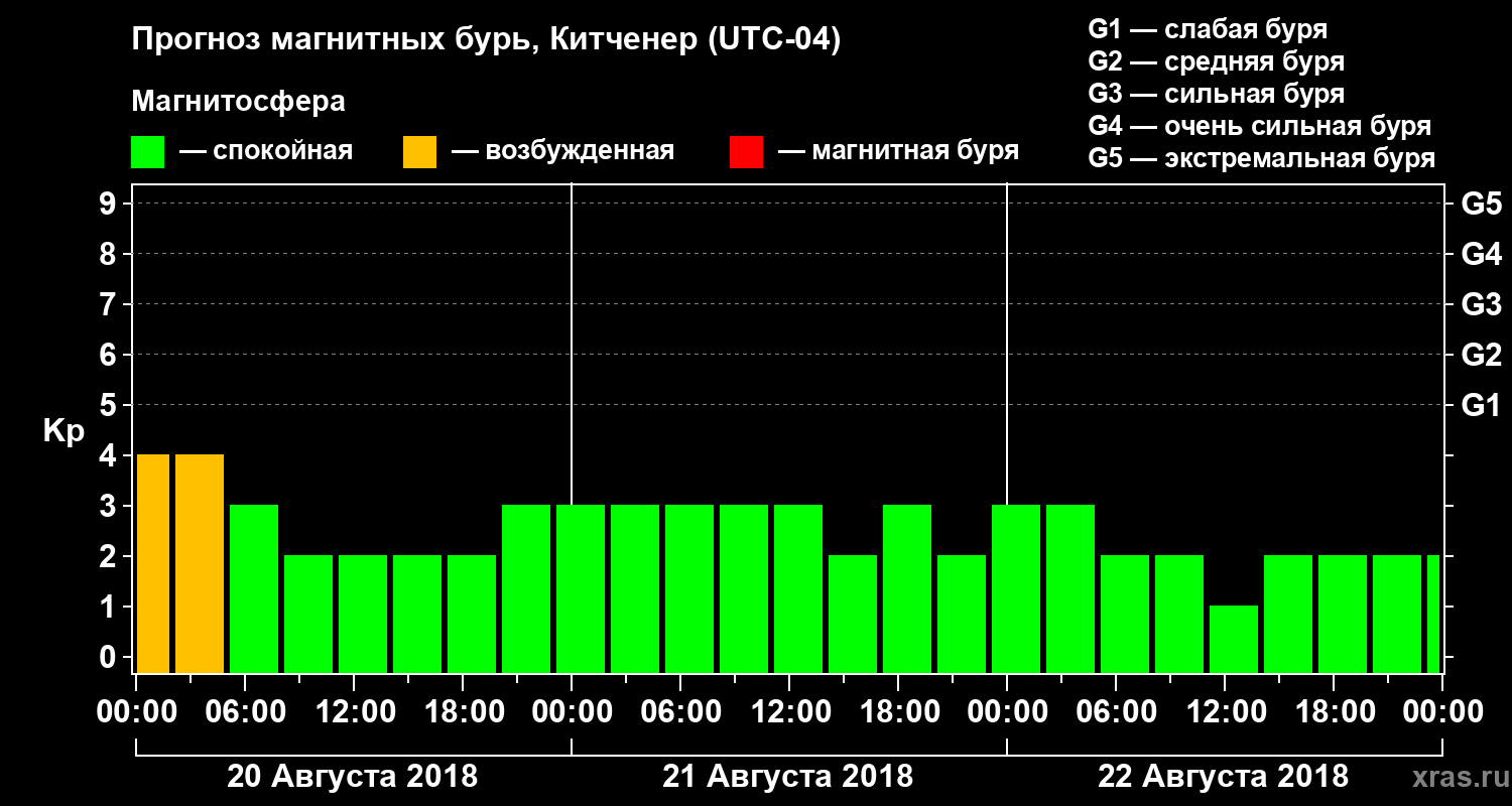 Прогноз магнитных бурь в Китченере — 20 августа 2018 года