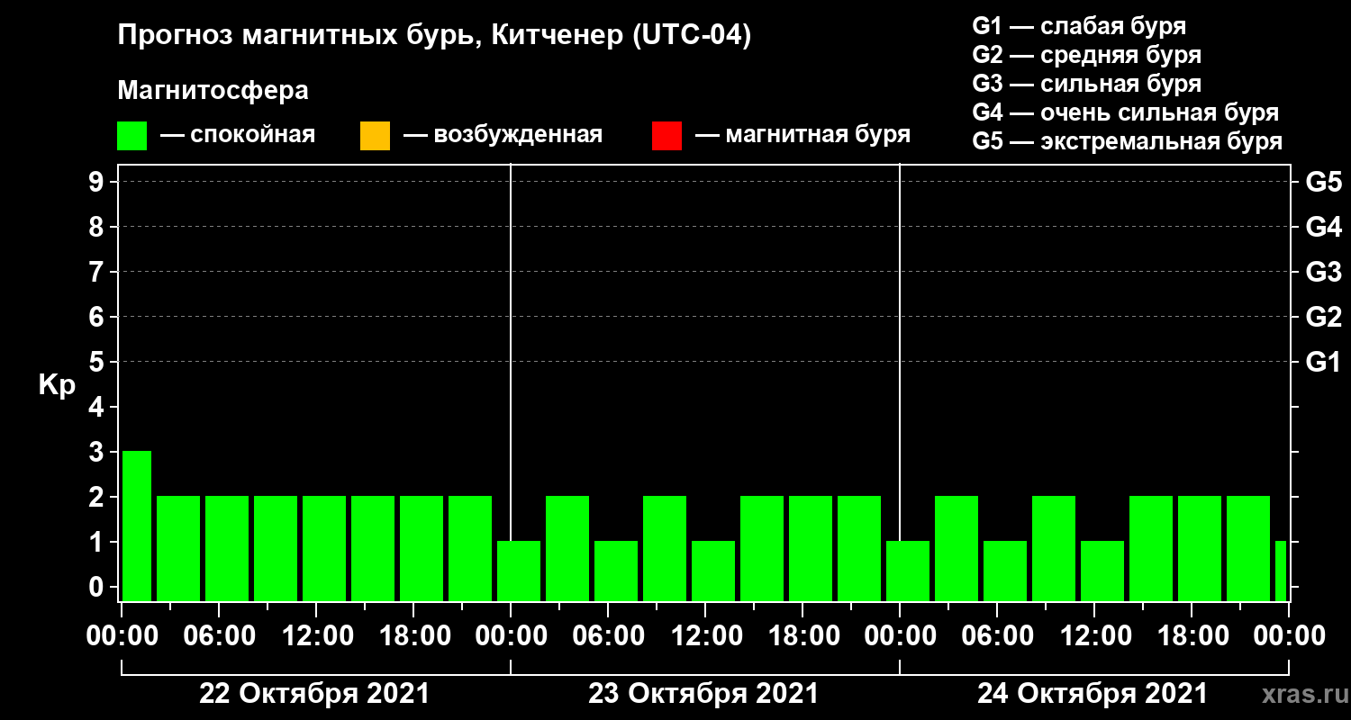 Прогноз магнитных бурь в Китченере — 22 октября 2021 года