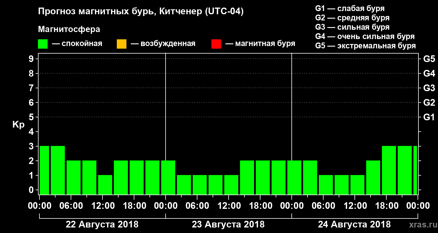Прогноз магнитных бурь в Китченере на 22 августа 2018 года