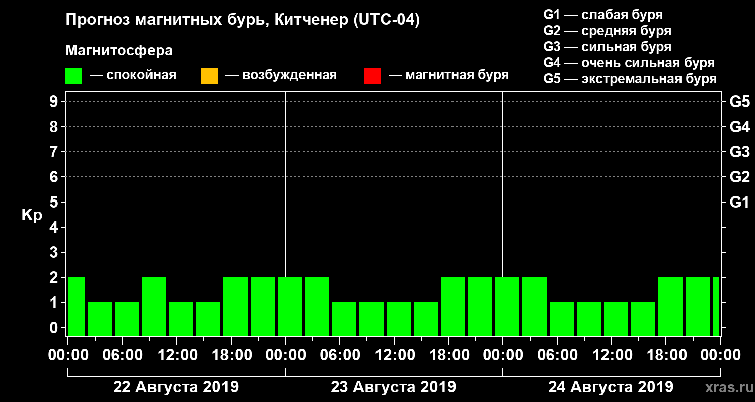 Прогноз магнитных бурь в Китченере на 22 августа 2019 года
