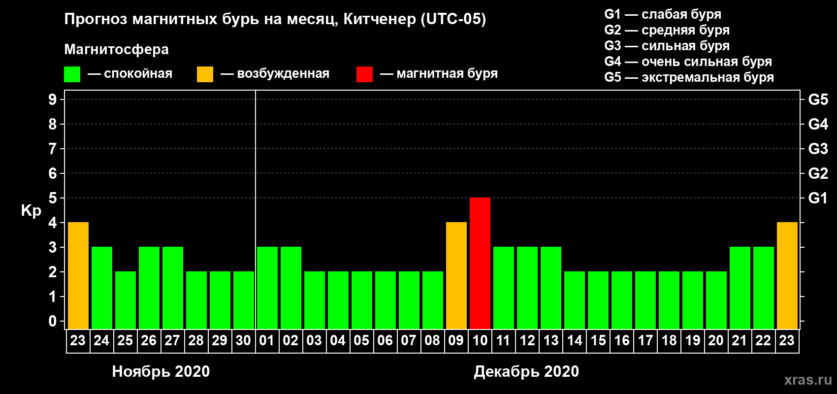 Прогноз магнитных бурь в Китченере — 23 ноября 2020 года