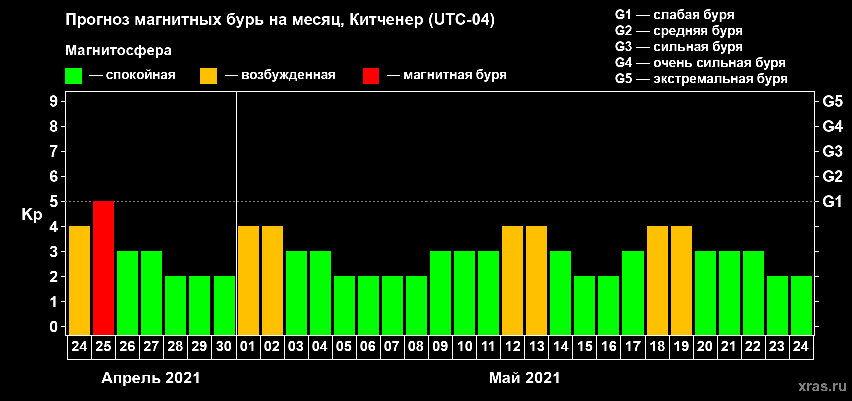 Прогноз магнитных бурь в Китченере — 24 апреля 2021 года