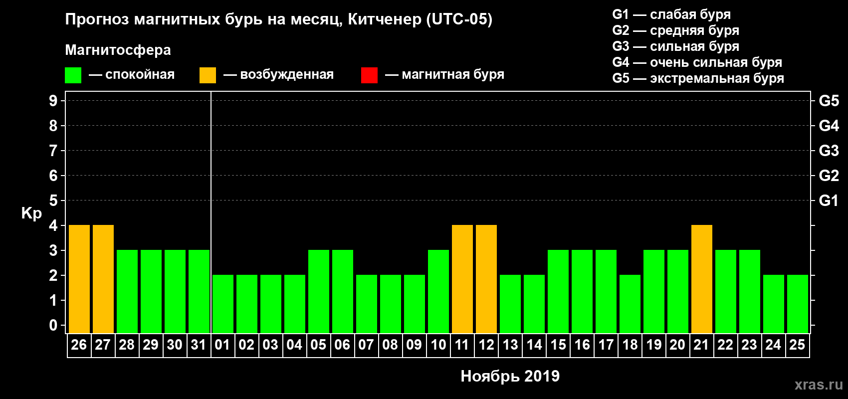 Прогноз магнитных бурь в Китченере — 26 октября 2019 года