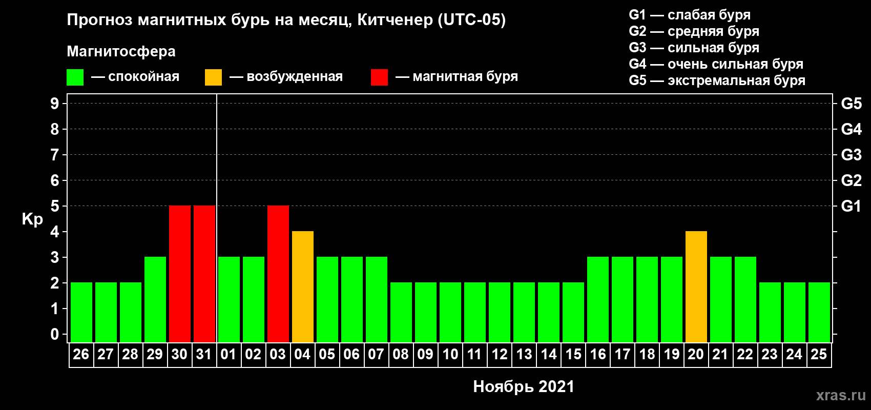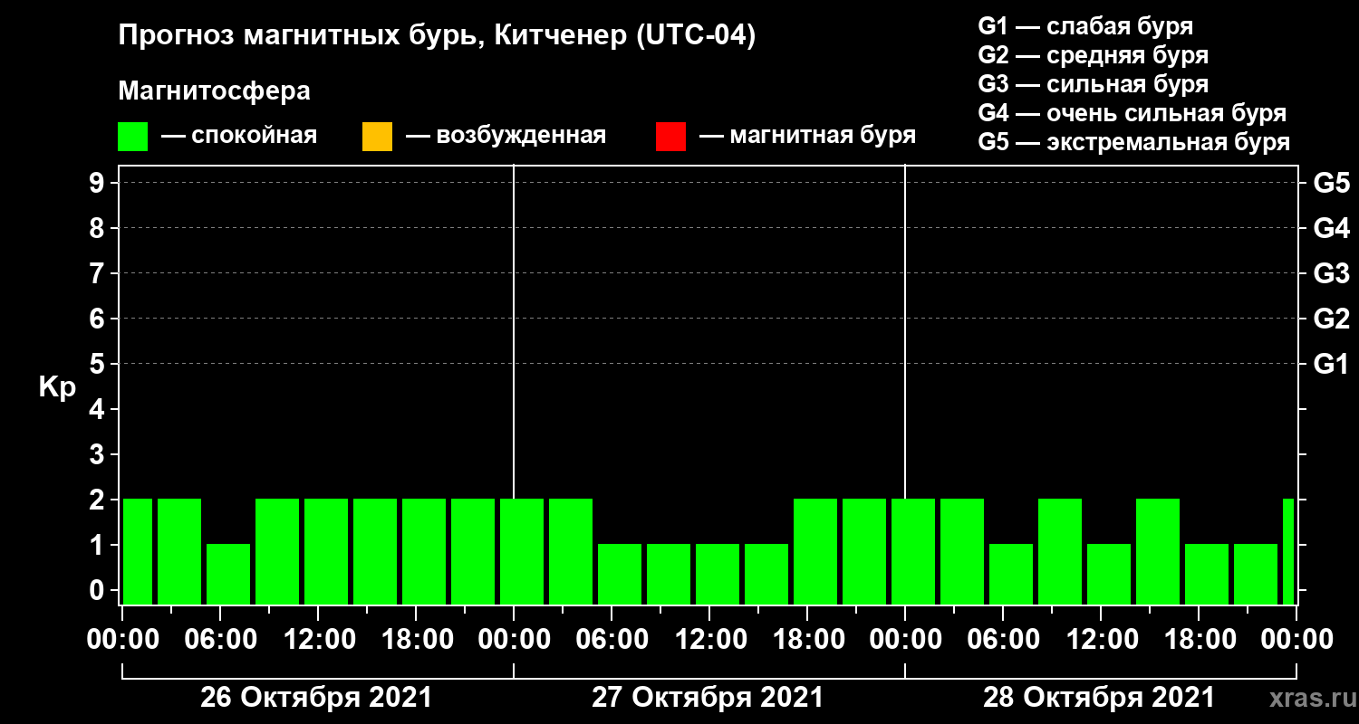 Прогноз магнитных бурь в Китченере — 26 октября 2021 года